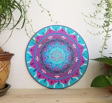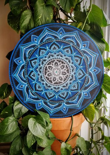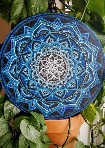 Utilisés en psychothérapie, les mandalas sont reconnus pour créer un effet de lâcher-prise, de relaxation et donc nous emmener dans un état plus méditatif. Chacun d'eux est totalement unique, réalisé avec différentes intentions et dégageant une énergie qui lui est propre. À la forme se marient les couleurs et aux couleurs se combine parfois un symbole. Laissez-vous porter par cet univers plus abstrait qui saura remmener un moment d'évasion et une tranquillité dans votre esprit.
